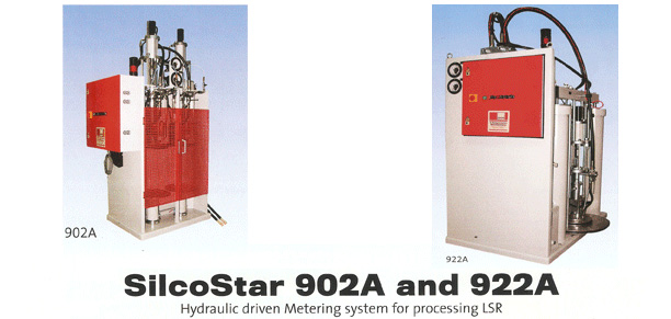The SilcoStar machines are a range of high-quality production systems. Their powerful hydraulic drive system acts in line with the metering pumps eliminating the disadvantages of 4 pump systems. A modern PLC control with display allows entry of the machine and production parameters by means of a keyboard. SilcoStar metering systems are environmental-friendly, as metering of colours and additives takes place only in the LIM machine's mixing head. This reduces the paths to be flushed and consequently the material consumed. The machines offer the following advantages: