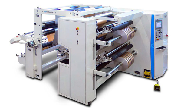 REWIND - Duplex rewind with lay-on rolls • Differential Friction shafts or Air expanding shafts • Independent lay-on rollers with pneumatic pressure control • Tension regulation by multiple systems • Manual core positioning or assisted by laserpointers or by automatic loader • Roll offloading by twin bar device or motorised trolley
